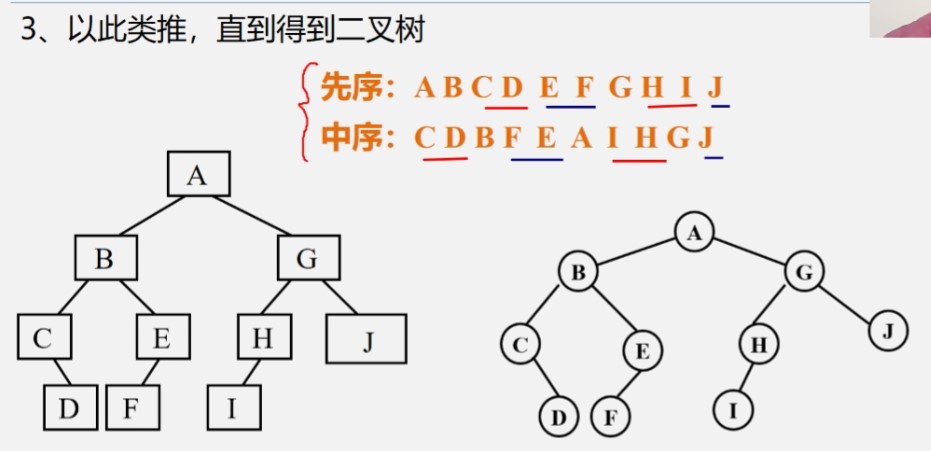 由二叉树的先序序列和中序序列、或由二叉树的后序序列和中序序列可以确定唯一一棵二叉树